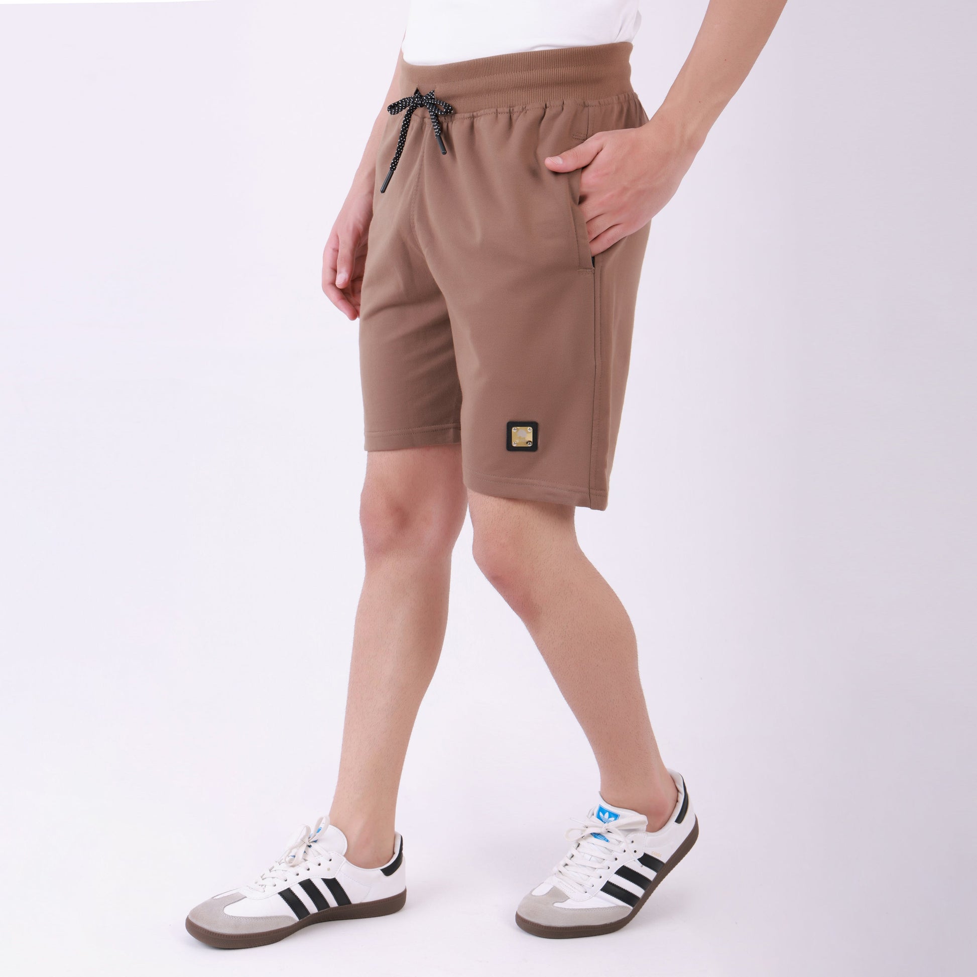 Embrace effortless style and comfort with these men's brown jersey shorts. Crafted from a soft knit fabric, these versatile shorts feature a rich, earthy tone perfect for pairing with a casual tee or hoodie. The elastic waistband with a contrasting drawstring ensures a perfect fit for lounging, errands, or light athletic activities. Stay cool and active this summer with these highly functional men's dark gray cargo shorts. Constructed from a lightweight, potentially quick-drying technical fabric, these shorts are built for performance and comfort. The secure zippered cargo pocket adds essential utility, making them perfect for travel, hiking, or an active casual day.
