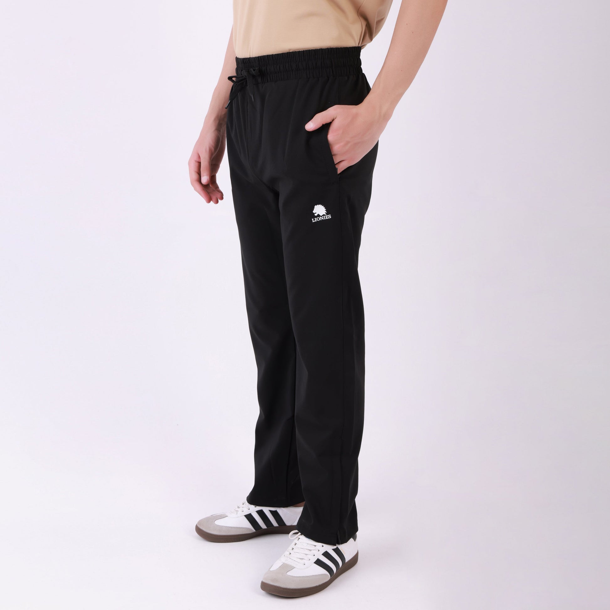 Elevate your streetwear look with these modern men's black patchwork track pants. These trousers feature tonal color-block panels in black and dark gray technical fabrics, creating a contemporary and rugged silhouette perfect for a bold urban aesthetic. Designed for comfort with a relaxed straight fit, they are ideal for everyday wear or active casual outings.