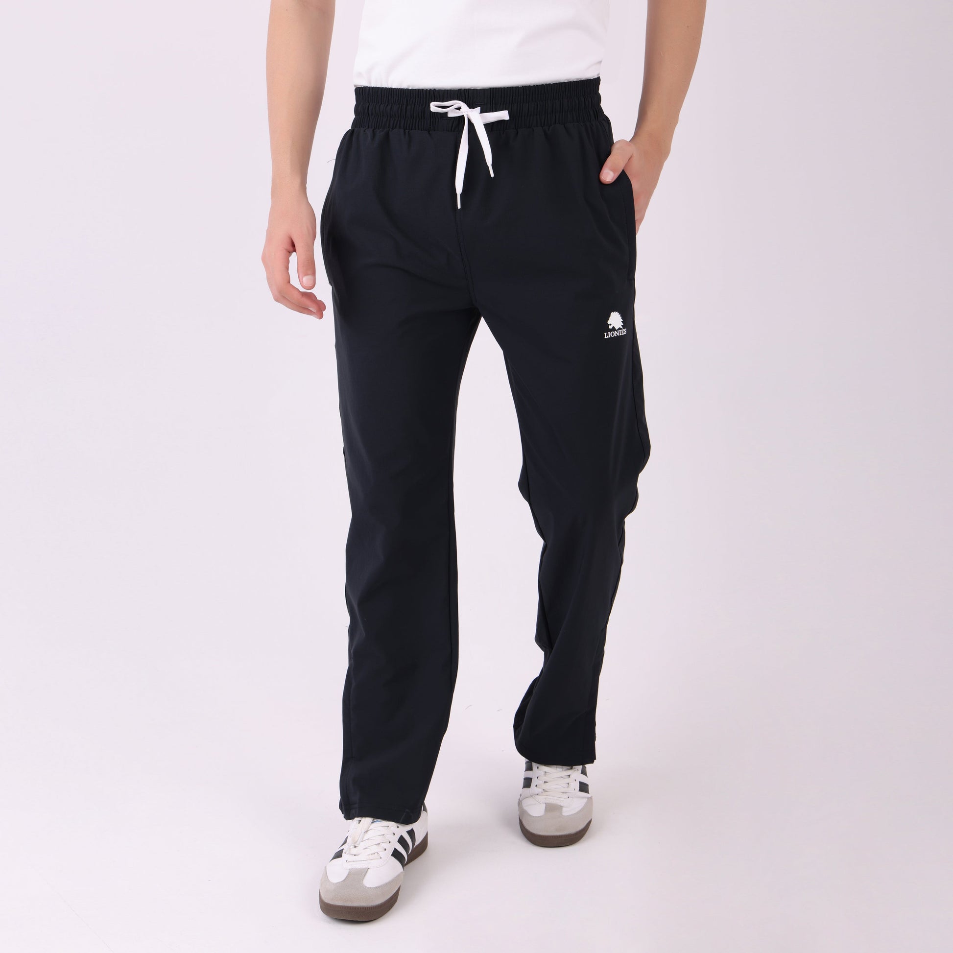 Step up your casual wear with these modern men's black patchwork trousers. These pants feature tonal black and gray color-block panels in different fabric textures (appears to be a technical or nylon style) for a distinct, high-fashion streetwear look. The essential piece for comfort and casual style, these men's solid black track pants are designed for maximum versatility. Made from a lightweight, comfortable fabric, they feature a simple, wide-leg cut and a clean aesthetic. Perfect for gym sessions, travel, or relaxed athleisure wear.