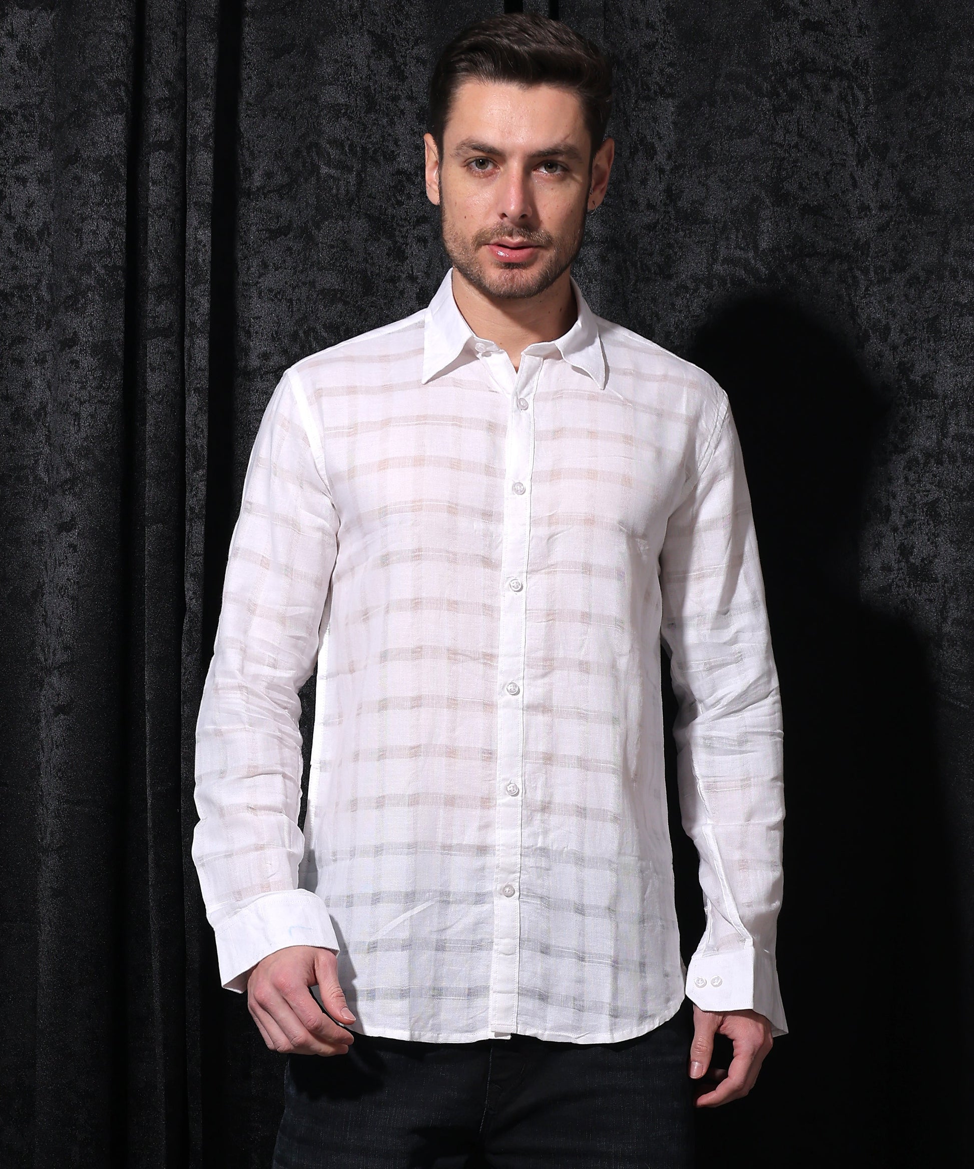 Elevate your wardrobe essentials with this refined men's white textured shirt. Perfect for events ranging from summer weddings and resort trips to sophisticated dinner parties and business-casual settings, this shirt redefines the classic white top. The fabric features a subtle, elegant woven pattern (like a micro-check or grid) that adds depth and visual interest without being loud, giving it a high-end, tailored appearance. Its lightweight and breathable construction ensures you stay comfortable while looking crisp all day.