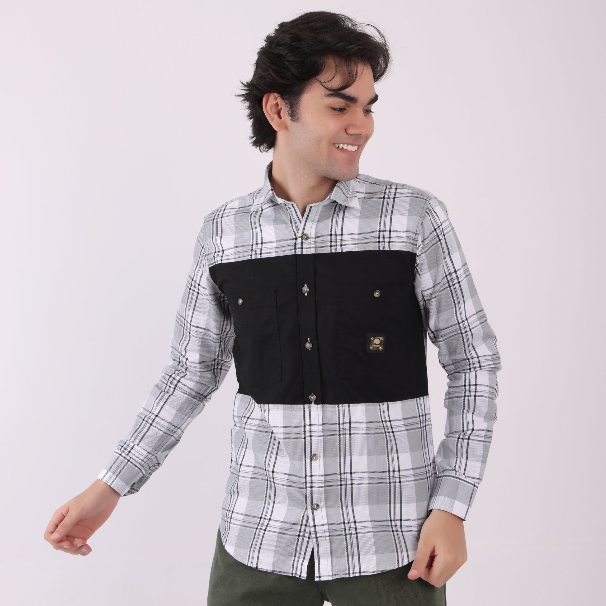 Step up your casual game with our Men's Modern Plaid Shirt featuring a Contrast Black Panel. This isn't your average plaid shirt; it's a bold statement piece designed for the fashion-forward individual who appreciates unique detailing and a contemporary aesthetic. Perfect for standing out in a crowd, this shirt seamlessly blends classic plaid patterns with a distinct modern edge, making it an essential addition to your smart-casual collection. Whether you're hitting a casual gathering, an evening out, or just want to make an impression, this shirt delivers on style and comfort.